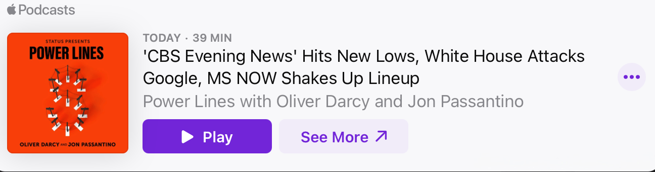 In this week’s episode: We dissect the sliding ratings of Bari Weiss’ revamped “CBS Evening News” and discuss the latest turbulence at the network. Then, we separate fact from fiction as the White House targets Google News for alleged bias, and unpack the reasoning behind MS NOW’s dayside programming shakeup.