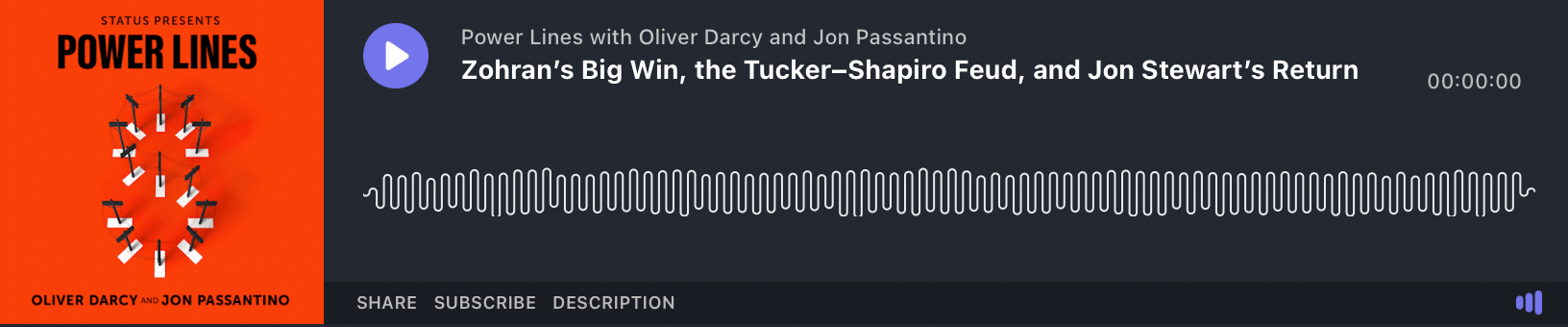 In this week’s episode: We discuss how MAGA Media is in meltdown mode over Zohran Mamdani’s win, Ben Shapiro’s searing criticism of Tucker Carlson, Marjorie Taylor Greene’s visit to “The View,” Jon Stewart’s Paramount renewal, and Netflix’s push into podcasting.
