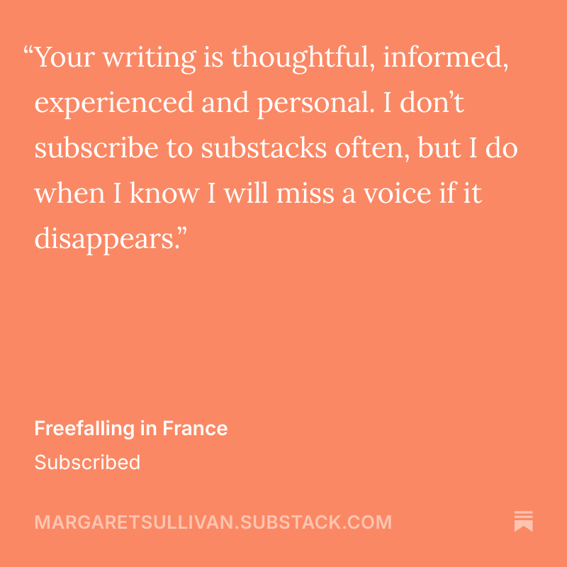 Here’s why one reader decided to subscribe, and below that is some information about what I’m trying to do with this newsletter.