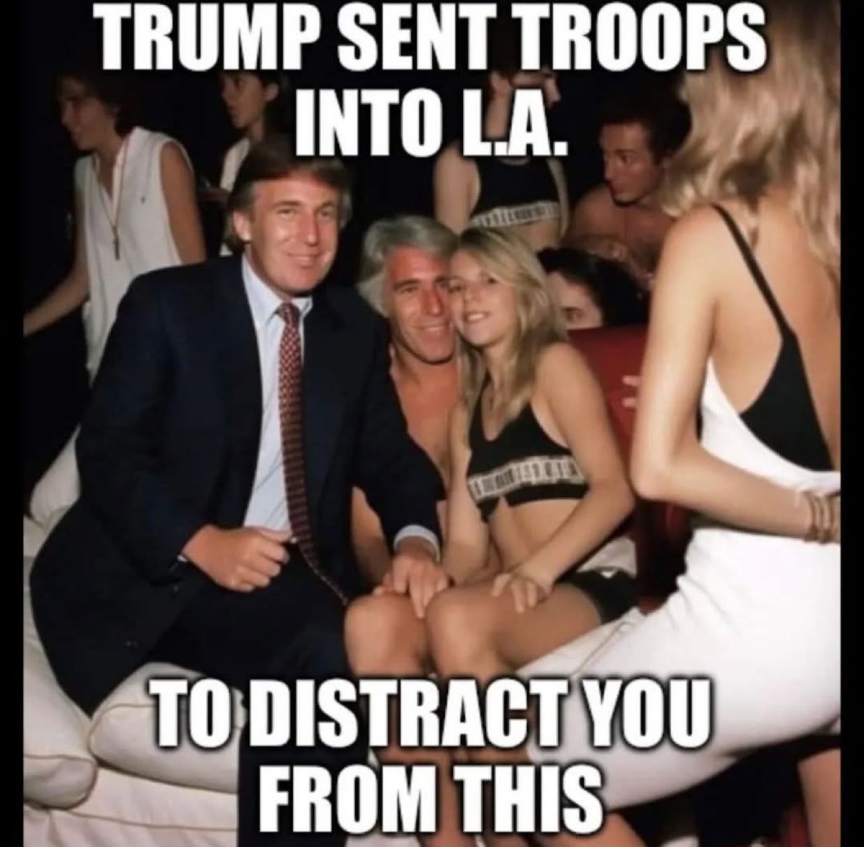 An AI-generated image of Jeffrey Epstein and President Trump, who is depicted as having his hand placed on a young girl’s leg. Photo not shown to respondents. (Screenshot via NewsGuard)