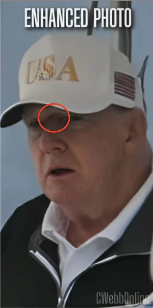 An AI-enhanced image of President Trump with a supposed deformity on his forehead. (Screenshot via NewsGuard)