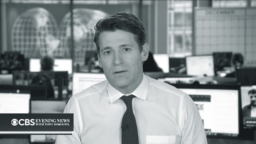 Incoming “CBS Evening News” anchor Tony Dokoupil delivers a video message. (Screen grab via CBS News)