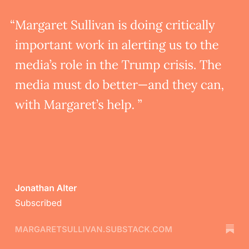Thanks to all of you for being here, and for caring about the crucial relationship between journalism and democracy. I appreciate your subscriptions and your comments, which I read with great interest. Here’s why one reader (you may recognize him as a prominent journalist and author) signed up. And beneath that, some information for newcomers about me and what I am trying to do here.