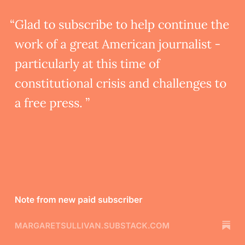 Since this is, overall, a positive post, please tell me what you’ve seen, heard or read in the past few days that has encouraged or inspired you, or that you simply admired. Here’s one from me, a paean to truth in the Guardian by Spanish journalist Carlos Hernández. Thank you for being here, and for caring about these issues. If you’ve decided to become a paid subscriber, I appreciate that very much. Here’s why one very generous reader did so in recent days.